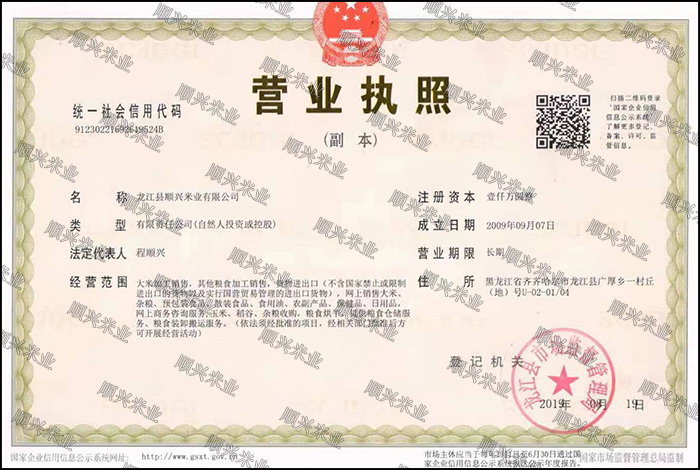 龍江縣順興米業有限公司 地址:黑龍江省齊齊哈爾市龍江縣廣厚鄉一村丘(地)號U-02-01/04 聯系人:程正民 電話:13214628666 400 101 0452